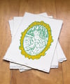 -5"x 7" two layer, water based screenprint on Arches Cream deckle edged 100% cotton paper, and also featured on Stonehenge Warm White 100% cotton paper.