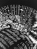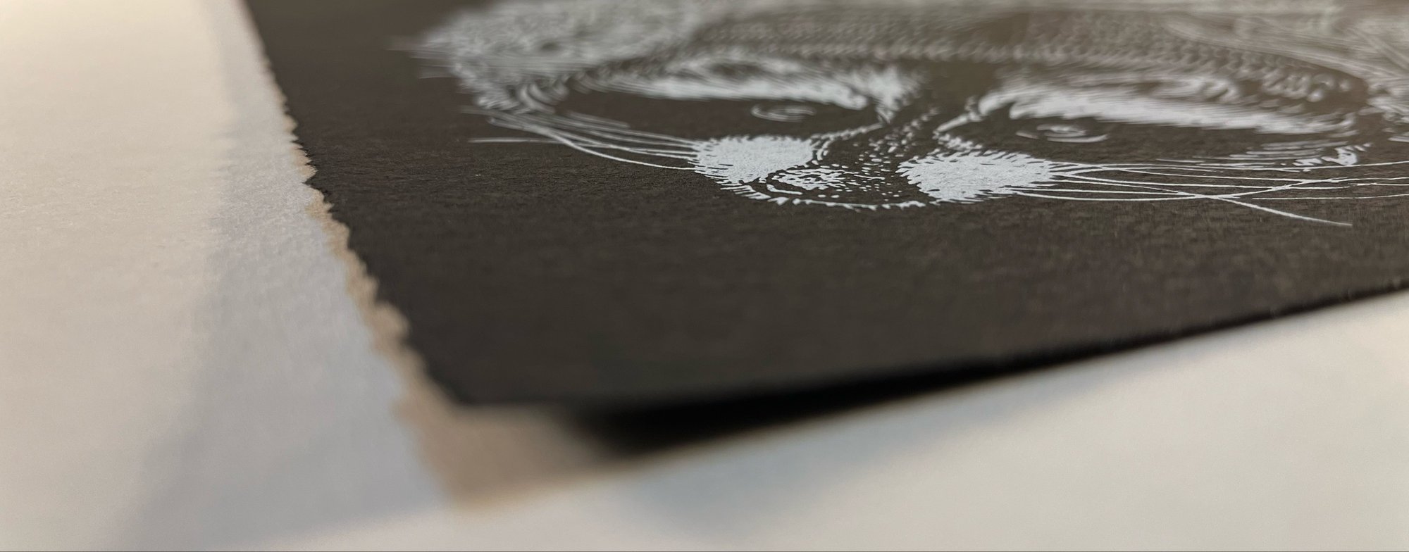 1-layer water-based ink screenprint on Black Stonehenge, hand-ripped deckled edge paper.