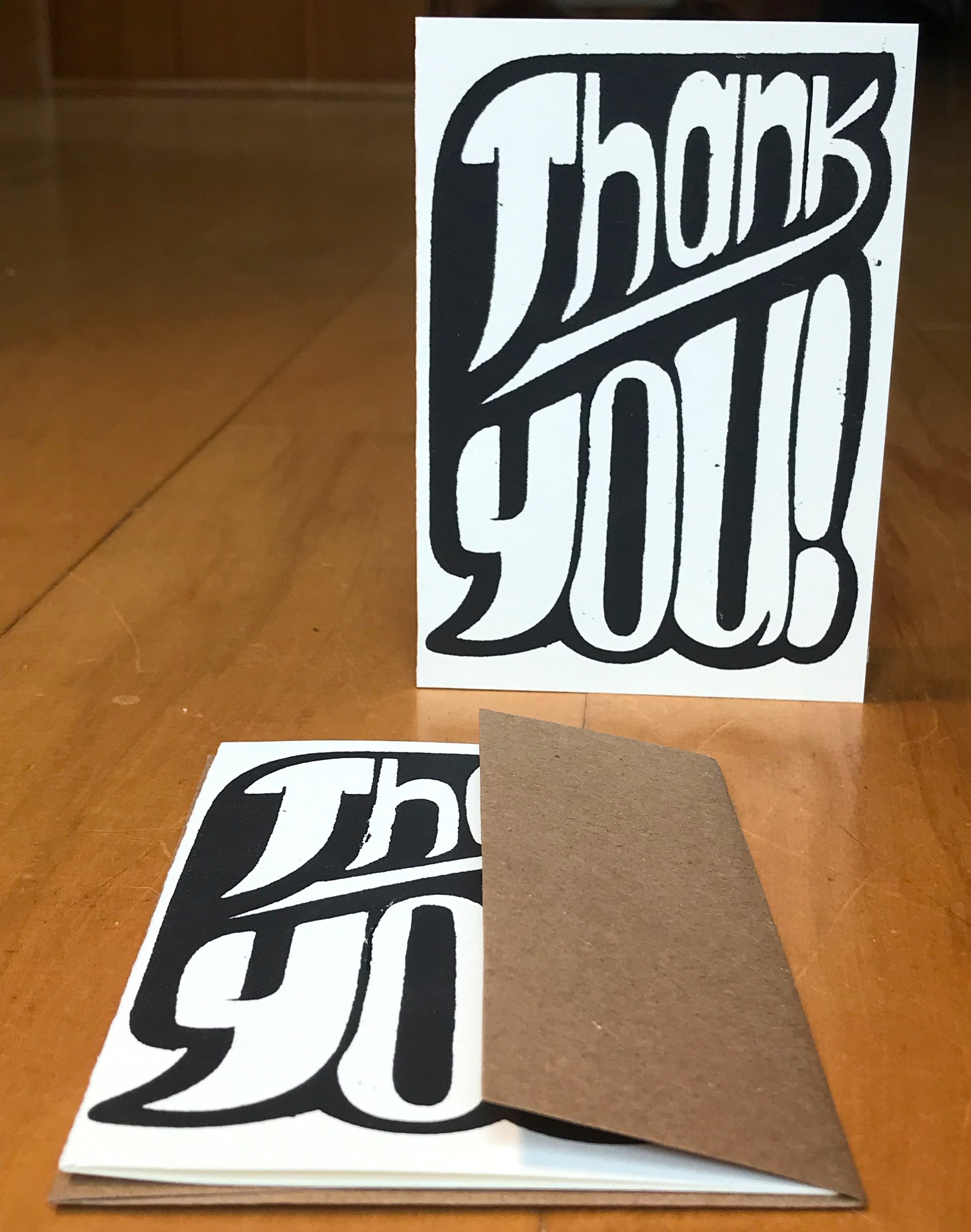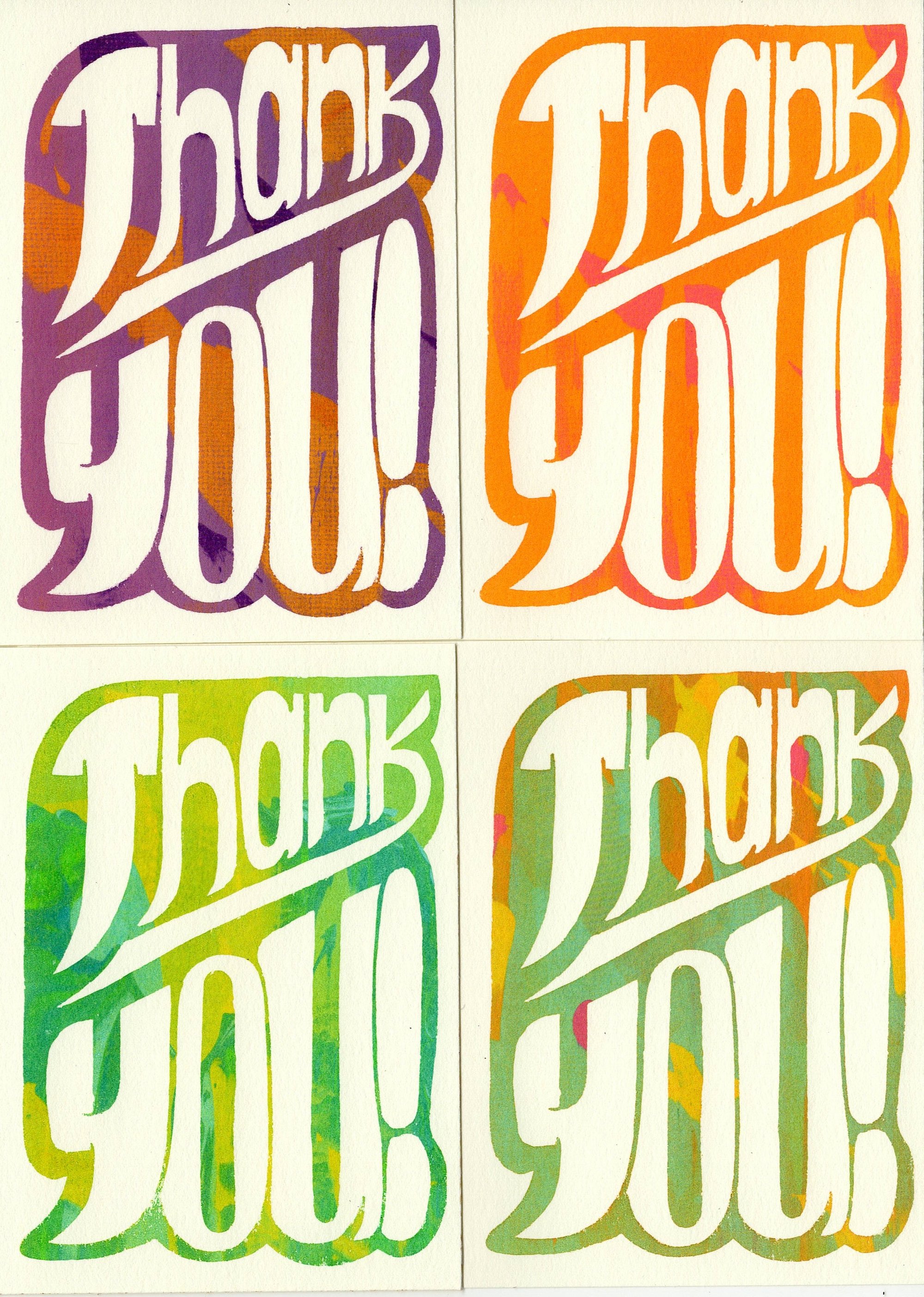 1-layer screenprints using the split fountain technique results in a variety of vibrant colors. I've also got a few black 1-layer black screenprints left. Most were printed on Stonehenge 5x7 100% cotton warm white paper folded in half (5" x 3.5"). All cards come with a brown envelope.